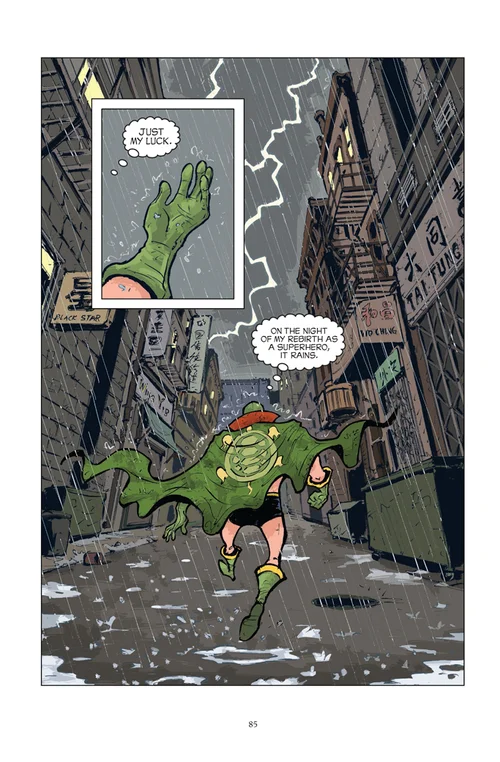 Gene (National Ambassador for Young People's Literature and MacArthur Fellow!) had discovered the Green Turtle comics by Chu Hing - in the original comics, the Green Turtle would start to explain his origins and some emergency would always crop up - so Gene decided to tell that story in The Shadow Hero, and had me along for the ride :)
